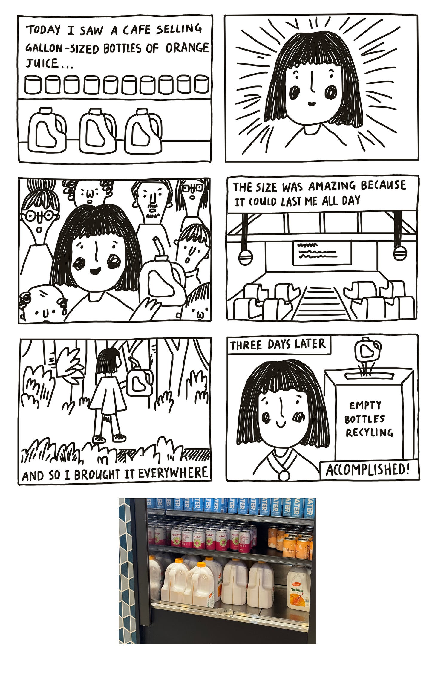 This photograph was originally taken at the very beginning of the semester, and since then, I’ve noticed that this cafe recently replaced these whole gallons with half gallons. I wonder if they found the whole gallons hard to sell (LOL). However, I still haven’t seen anyone purchase and/or hold a bottle of orange juice of either size on campus.