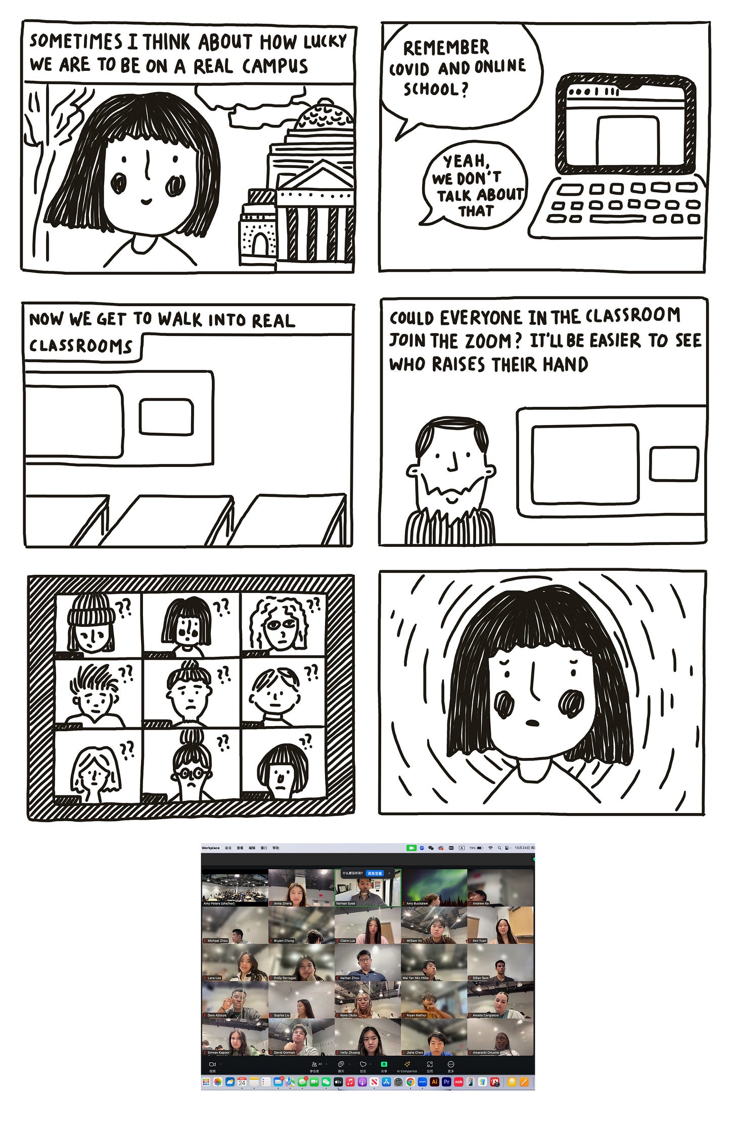 In recognition of this semester of college coming to a close, I’ve put together a much-needed photo dump of the most unforgettable things seen on campus this semester. To put them in context, I’ve also illustrated short comics inspired by each photo.